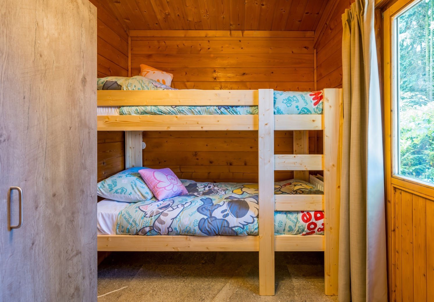 Molletjes Boshut (6 personen): Kom tot rust in deze boshut, gelegen in een prachtig bosrijk gebied. De inrichting is fris en rustgevend. De boshut heeft een volledig uitgeruste keuken, een knusse zithoek en drie slaapkamers met Swiss Sense bedden om heerlijk in weg te dromen na een dag vol avontuur. Ook hier geniet je van een eigen omheind terras.