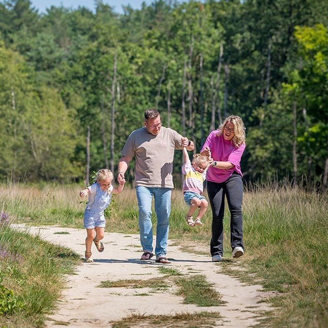Met lekker weer is het heel fijn om te wandelen of te fietsen. Vanaf de Tovertuin loop je zo de Kalmthoutse Heide op, een wonderlijk natuurgebied met heide en bossen. Wie weet kom je Vlindertje daar wel tegen.